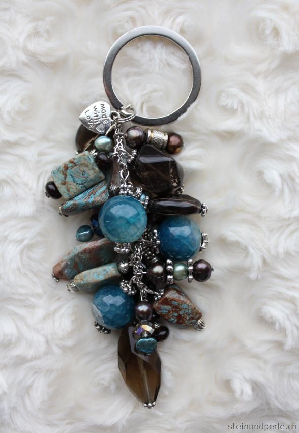 Dieser Anhänger ist toll als Accessoire an einer Handtasche zu tragen oder eignet sich auch als grösserer Schlüsselanhänger hervorragend.