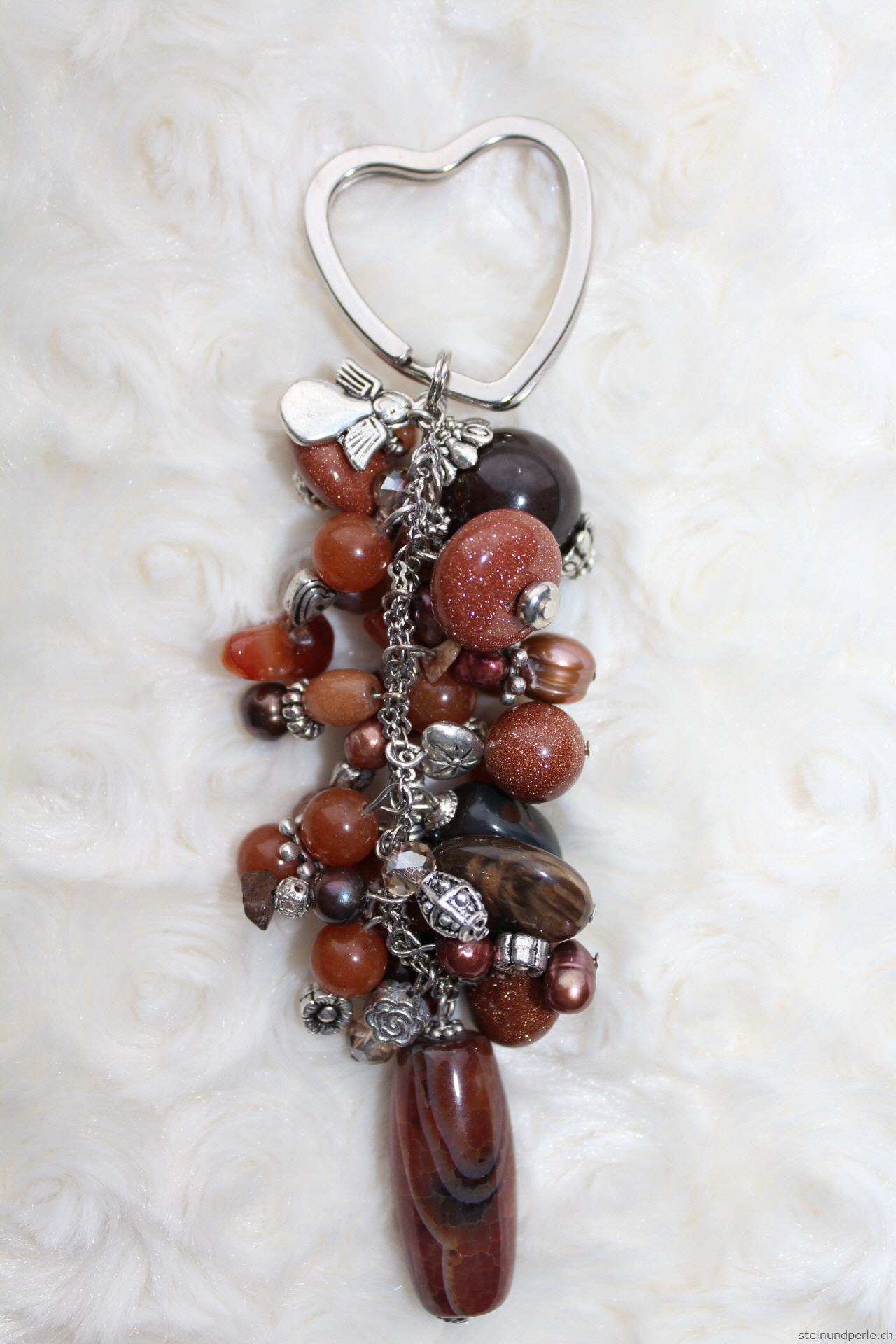 Dieser Anhänger ist toll als Accessoire an einer Handtasche zu tragen oder eignet sich auch als grösserer Schlüsselanhänger hervorragend.