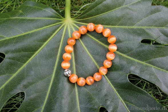 Das Armband besteht aus orangem Cateye in Form von grossen Kugeln im Durchmesser von 10 mm.