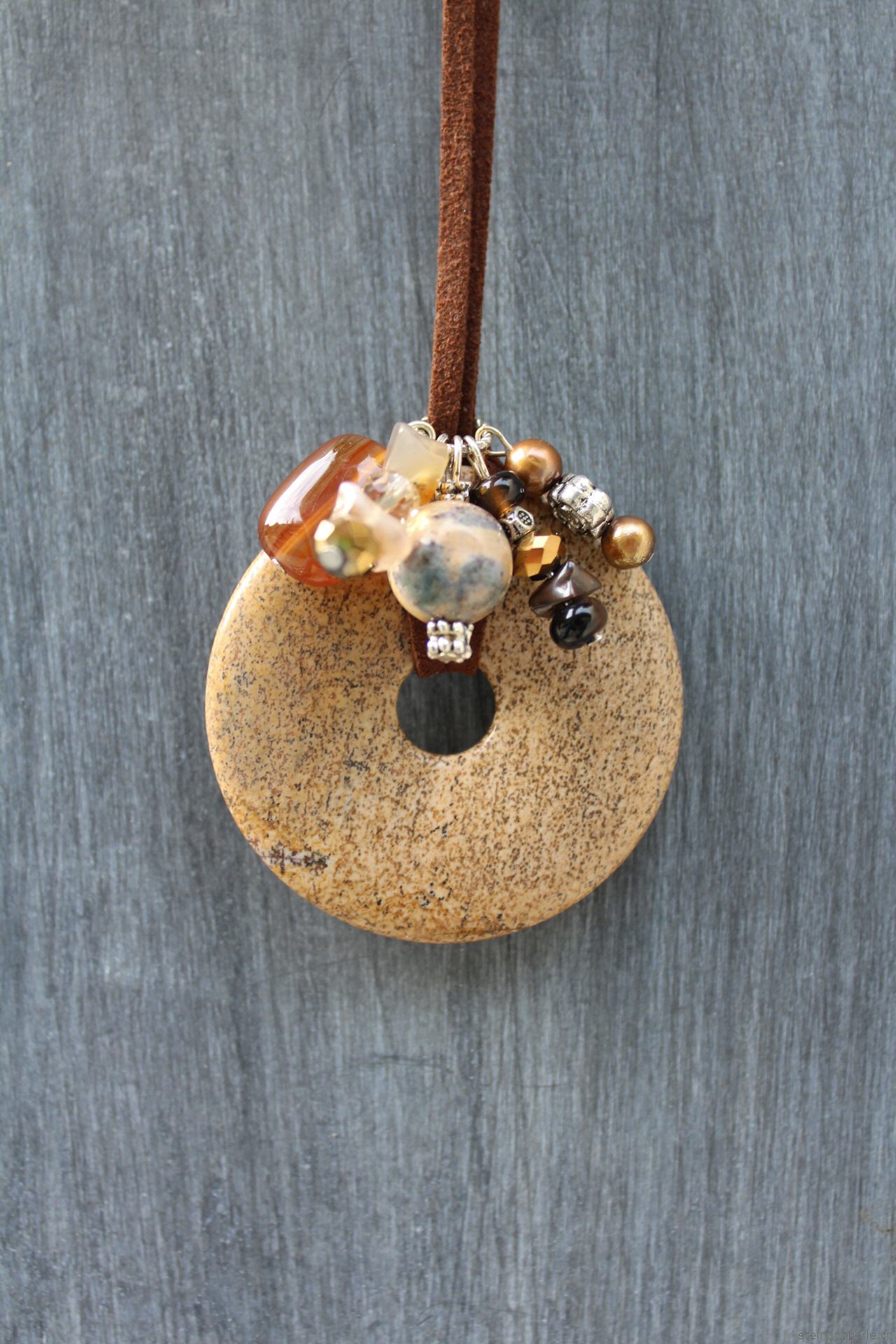 Toller Donut (Pi-Scheibe) aus hellbraunem Jaspis mit einem Durchmesser von 5 cm.