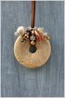 Ein grosser Stein in Form eines Herzens oder Donut, kreativ mit Perlen und weiteren Steinen zu einem Anhänger verarbeitet