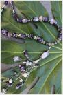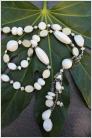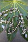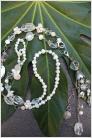 Kette aus weissen Steinen, Perlen und silberfarbenen Accessoires