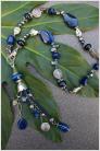 Kette aus blauem Achat, violetten Perlen und silberfarbenen Accessoires