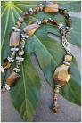 Tigeraugekette mit hellgrauen Perlen und silberfarbenen Accessoires