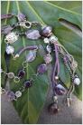 Kette aus Amethyst, violetten Steinen und schwarzen Perlen sowie silberfarbenen Accessoires