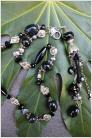 Onyx Kette mit silberfarbenen Accessoires und violetten Perlen