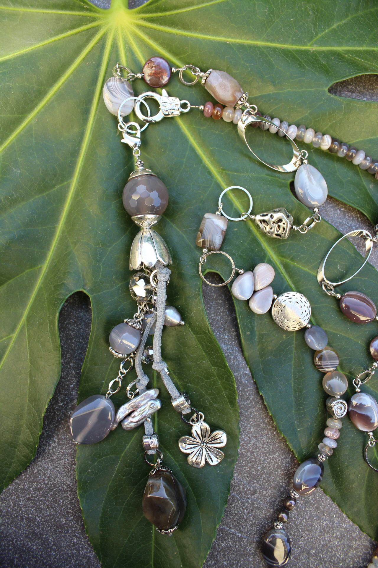Diese Kette ist aus grauem Achat in wunderschönen Farbschattierungen, verschiedenen Perlen und silberfarbenen Metallteilen gefertigt.
